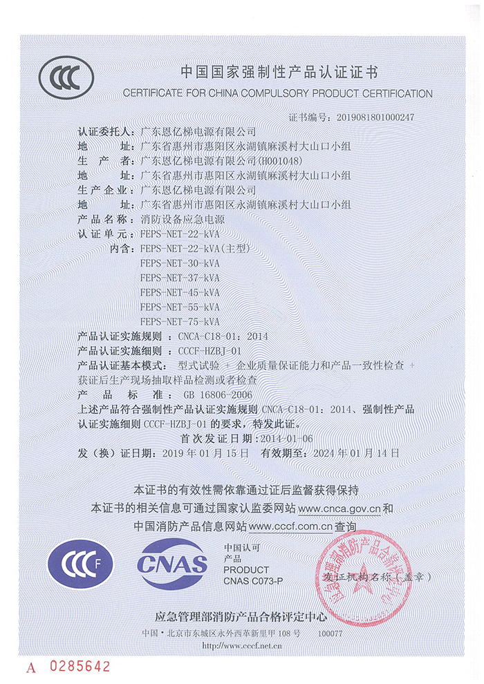 中國(guó)國(guó)家強(qiáng)制性產(chǎn)品認(rèn)證(消防設(shè)備應(yīng)急電源)
