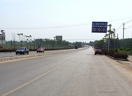 全線主要工程量:路基土石方2880653m3,路面1196519m2,防護工程178252m3,全線共計9座小橋,1座中橋,16座人行天橋(暫定,根據(jù)地方需要調(diào)整),圓管涵接長、新建共計483.75m。