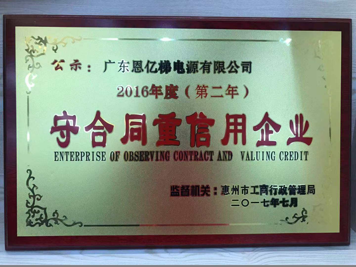 守合同重信用企業(yè)證書